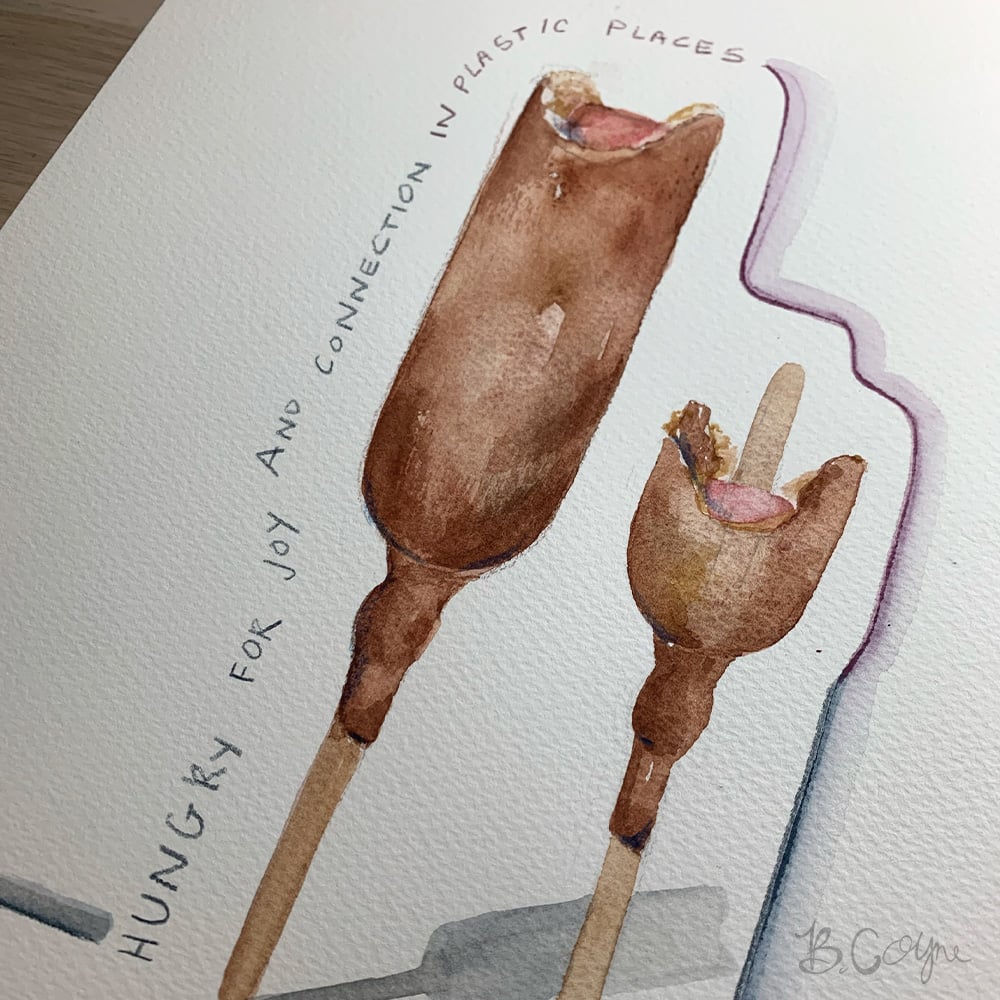 This is an original painting included in my self published zine: ‘Unsolicited Thoughts While Eating Alone’.